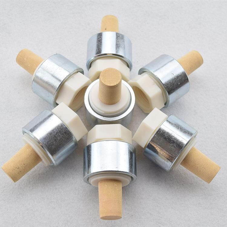 氣嘴是一種安裝方便、使用范圍廣泛的破拱助流設(shè)備,能安裝于料斗、料倉(cāng)尤其是管道上。氣嘴前部是多孔金屬,外部通入的高壓空氣,經(jīng)過(guò)氣嘴后均勻分散在氣嘴周?chē)?,促使粉料流?dòng),達(dá)到助流效果。流化效果由氣嘴數(shù)量確定,不同的粉料及容器狀況需要不同數(shù)量的氣嘴。本產(chǎn)品具有安裝維護(hù)方便,價(jià)格低廉、流化效果明顯等突出優(yōu)點(diǎn)。