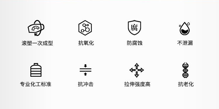 1)產(chǎn)品采用韓國進口高質(zhì)量LLDPE作為產(chǎn)品生產(chǎn)原材料,生產(chǎn)出來的pe儲罐具有無毒、無味、耐酸、耐堿、耐沖擊、耐高溫、耐寒、不易老化等優(yōu)點。