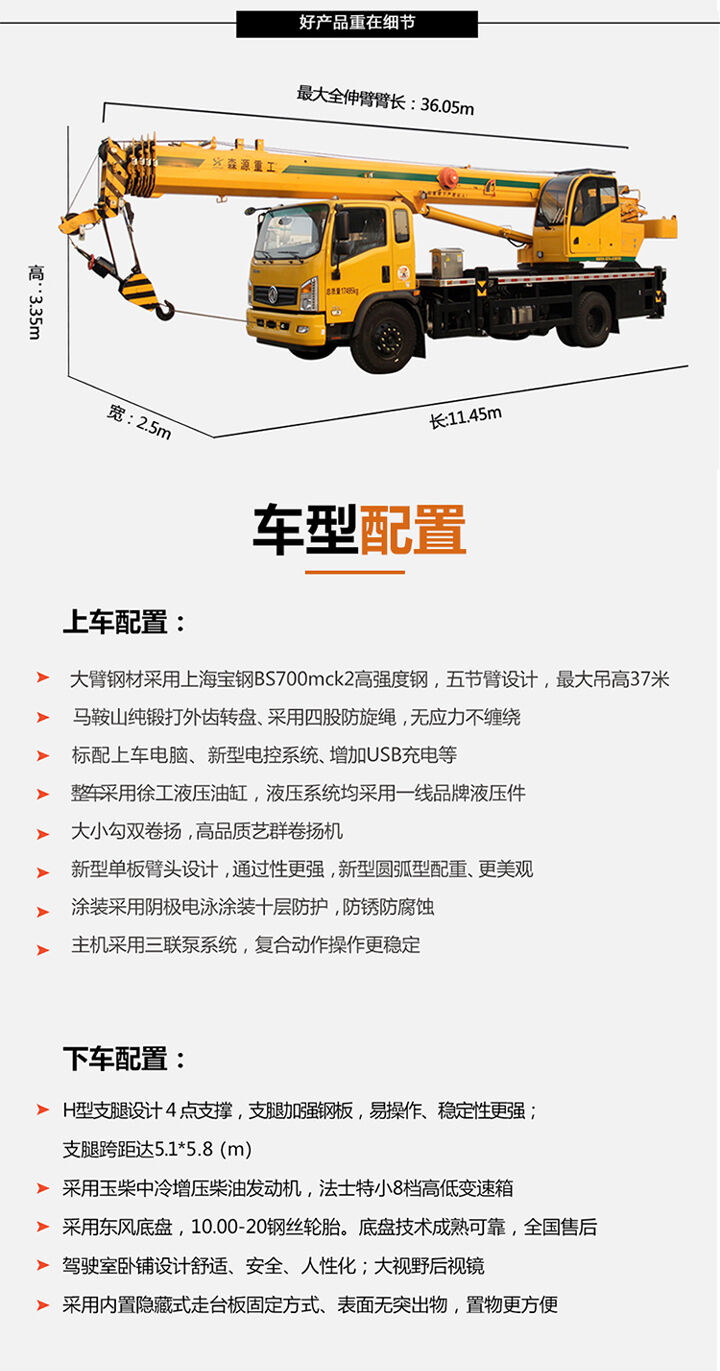森源十噸汽車吊適用于狹窄工況的小型吊車 東風
