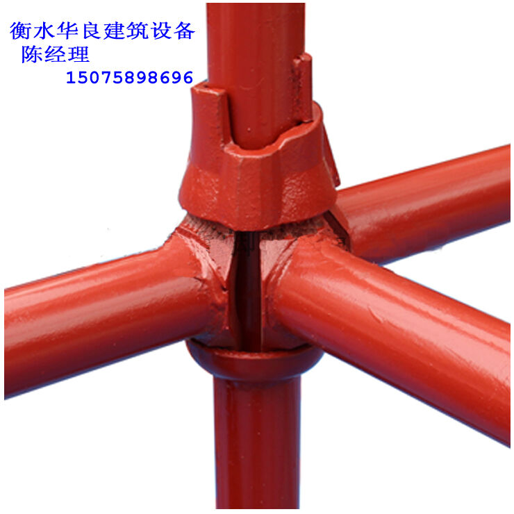 碗扣腳手架獨(dú)特的結(jié)點(diǎn)設(shè)計(jì),雖仍應(yīng)歸為鉸接,但卻能夠承受相對(duì)更大的荷載,再加上其立桿上的上碗和橫桿上的插片均為鍛鋼的工藝,使這款碗扣腳手架系統(tǒng),在國(guó)外被廣泛地應(yīng)用于化工廠、煉油廠、油田以及大型船艦維修等荷載相對(duì)較高的領(lǐng)域。考慮到系統(tǒng)的穩(wěn)定性,安裝斜桿是必須的。為了補(bǔ)足這個(gè)弱項(xiàng),該系統(tǒng)特意設(shè)計(jì)了另外一類(lèi)斜桿,在斜桿的兩頭,均用高強(qiáng)度螺栓,各固定半個(gè)旋轉(zhuǎn)扣件,扣件亦采用鍛鋼工藝。這樣,盡管斜桿無(wú)法直接在碗扣的結(jié)點(diǎn)扣接,但可以用扣件扣接在橫桿或立桿的適當(dāng)位置上,也大大地改善了系統(tǒng)的穩(wěn)定性。