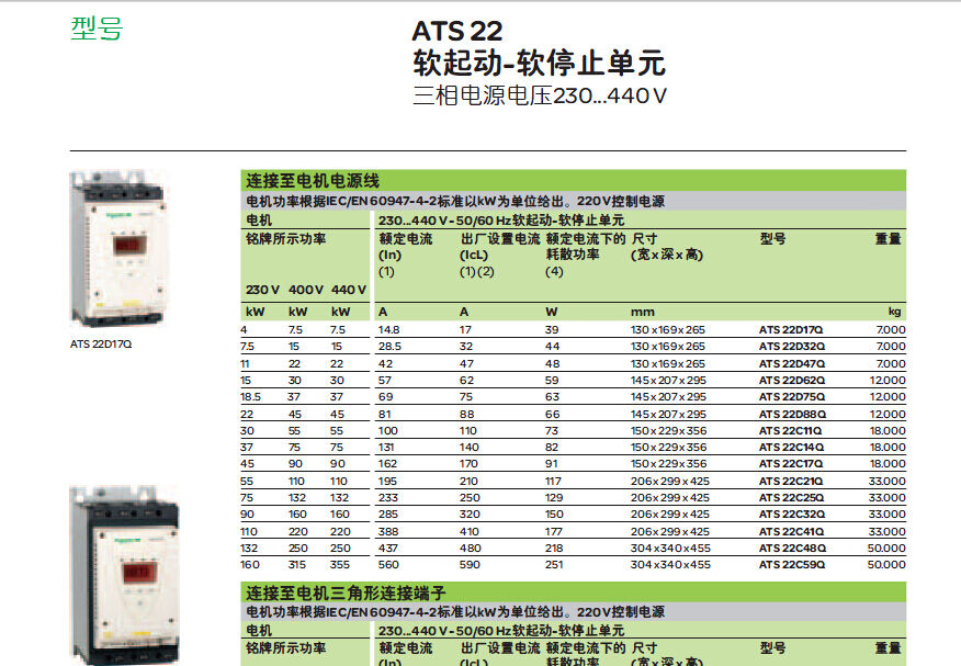 ATS 22軟起動-軟停止單元通過電壓和轉(zhuǎn)矩, 對額定功率在4至400 kW范圍內(nèi)的三相鼠