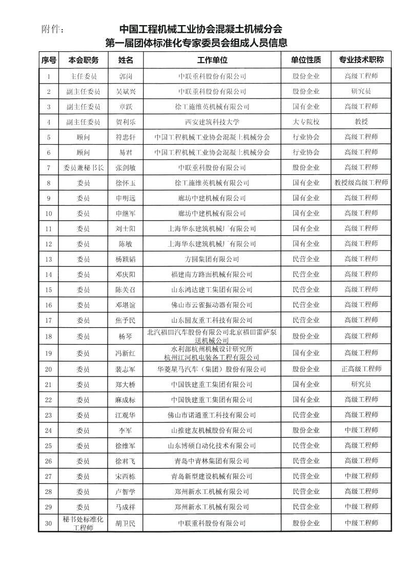 《關(guān)于成立中國工程機(jī)械工業(yè)協(xié)會混凝土機(jī)械分會團(tuán)體標(biāo)準(zhǔn)化專家委員會的通知》